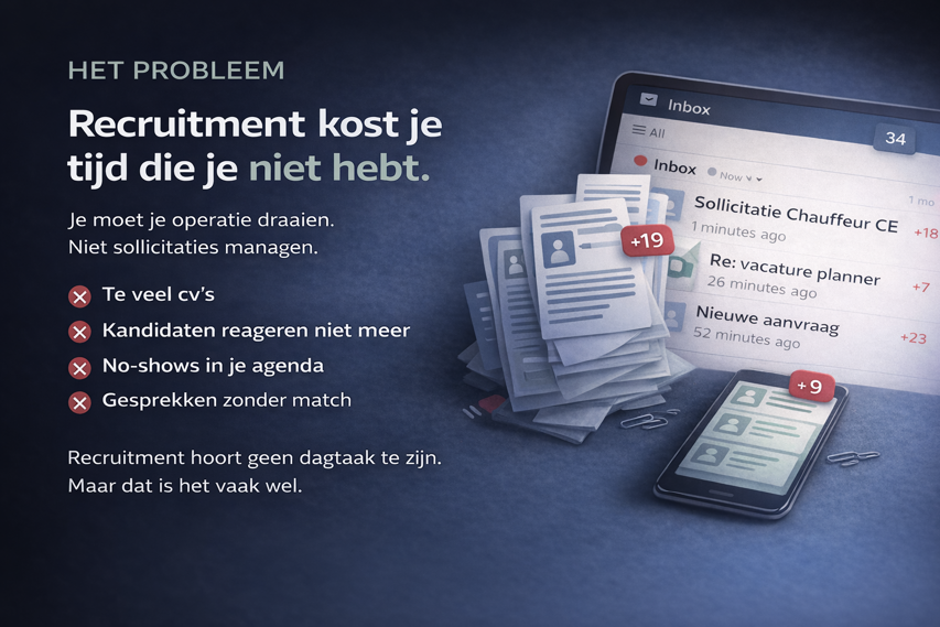 Veel organisaties lopen vast op werving. Terwijl je je operatie moet draaien, klanten moet bedienen en teams moet aansturen, vraagt recruitment ondertussen continu je aandacht.